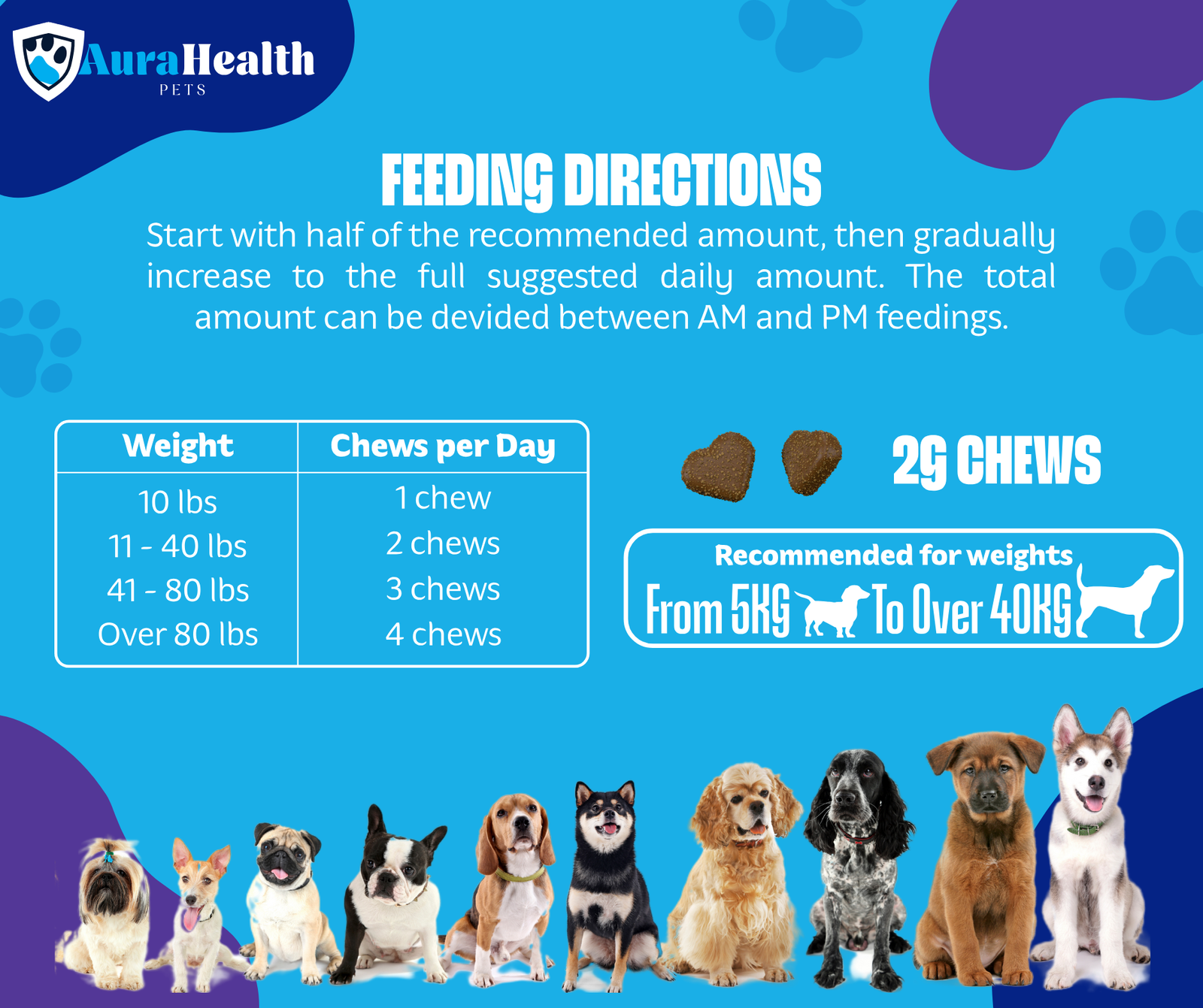 The Aurahealth Calming Chews are specifically formulated to meet the needs of small to medium-sized dogs, ensuring optimal results with every bite. The chews also address common triggers for poor behavior, such as separation anxiety or excessive barking, allowing your dog to stay calm and confident throughout the day. With these helpful supplements, you can look forward to a happier home environment for you and your pet.
